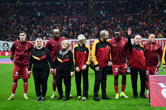 Sarı-kırmızılılar, genelde çocukların yer aldığı maç öncesi seremonide hayat tecrübesi yüksek Galatasaraylılara yer verdi. Florya'daki yurttan gelen misafirler, futbolcuların yanında sahaya çıktı.