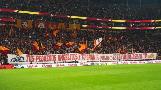 Galatasaray taraftarı, futbolculara destek veren büyük bir pankart açtı.