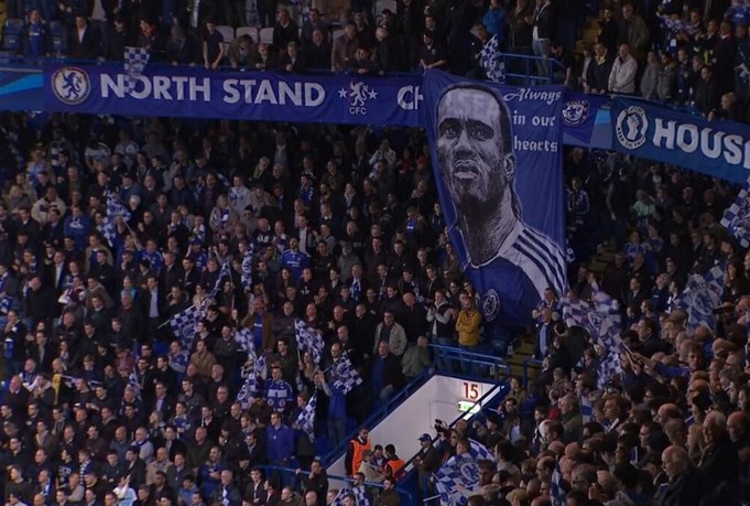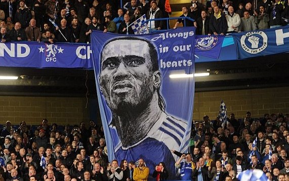 Öte yandan İngilizler Drogba için özel hazırlanan atkı ve flamalarla tribünlerde yer alarak tecrübeli yıldızı onurlandırdılar.